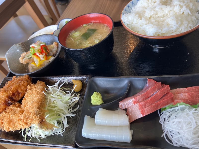 そして、岩井袋からぐるっと回って、隣りの勝山漁港に。この辺りには食事処が点在していて地元の海産物や肉厚で美味の黄金アジのフライを頂くことができます。