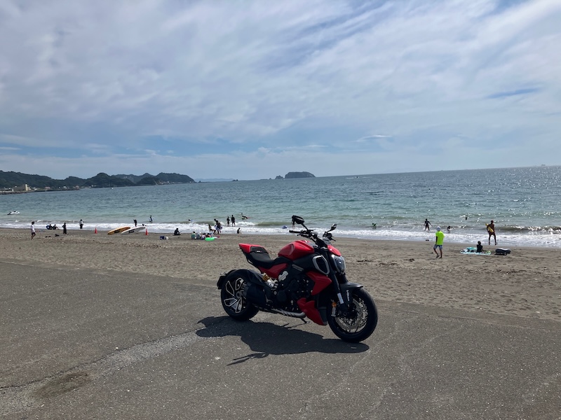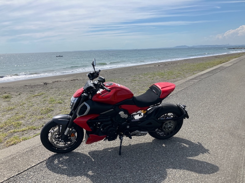 再び県道88号線に戻り、次は海へと向かいました。道中で田んぼの脇を通る道にぷらっと入り、新緑の稲の中をのんびり走る。人の多い大山千枚田だと棚田沿いの道をバイクで走るのも気が引けますが、バイクでならの気軽感が味わえてちょっと脱線して走ってみるのも楽しいです。ちなみに平野部が少なく感じる房総半島だか、千葉県はお米の収穫量が全国の都道府県で9位というお米の産地です。