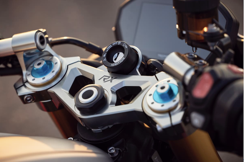 さらに RXと Moto2™ Editionは、クリップオンハンドルを採用することで、よりアグレッシブでレース志向のライディングポジションを獲得。エルゴノミクス全体も見直され、より攻めたライディングを楽しめるセッティングへと進化しています。