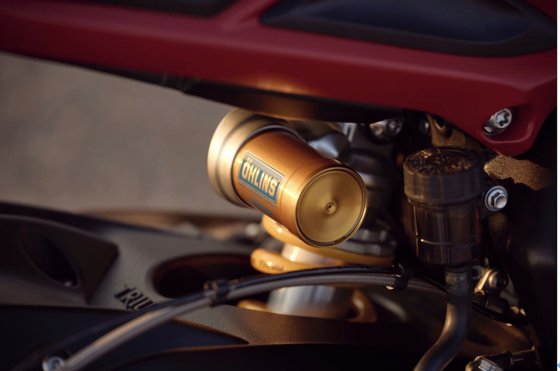 両モデルには、サーキットでのフィードバックとコントロール性を高めるフルアジャスタブルの Öhlins製 NIX30 フロントサスペンション が新たに採用されています。このプレミアムなサスペンションは、コンプレッション(圧側)調整・リバウンド(伸側)調整・プリロード調整・115mm のホイールトラベルといった細かい設定が可能で、どんなコーナーでも正確で安定したハンドリングを実現します。