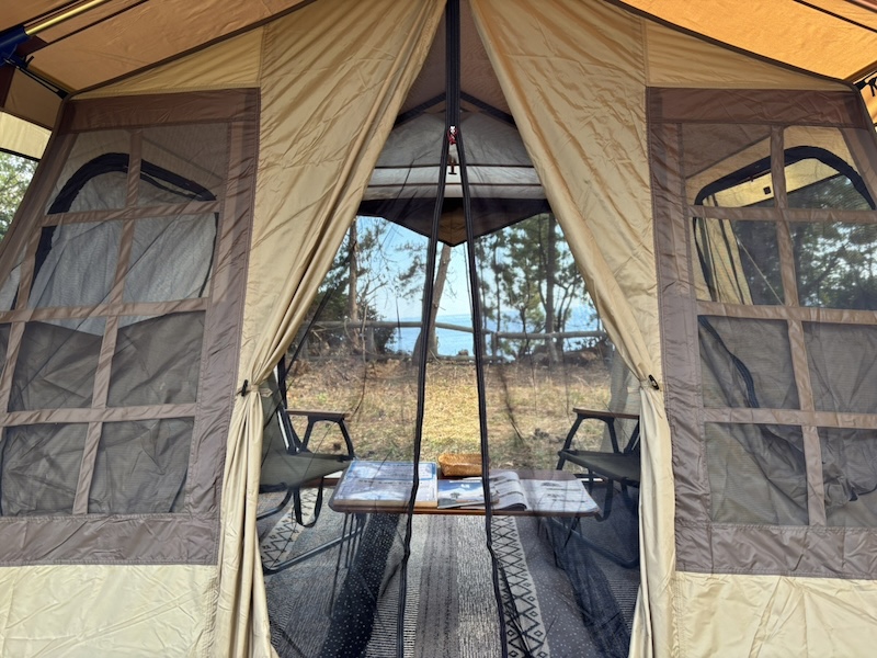 4面にメッシュがあり通気性も抜群。テントの中から外の景色を楽しむことができるのも嬉しいポイントです。