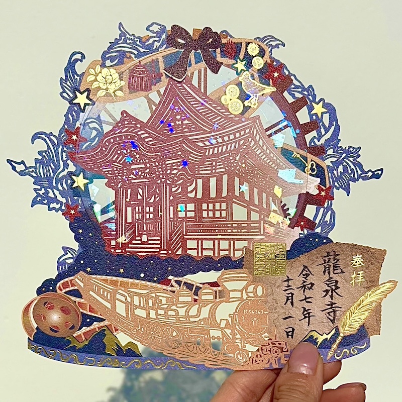 これまでの切り絵御朱印では難しかった 奥行き・透明感・光彩のゆらぎ を一枚に閉じ込めました。