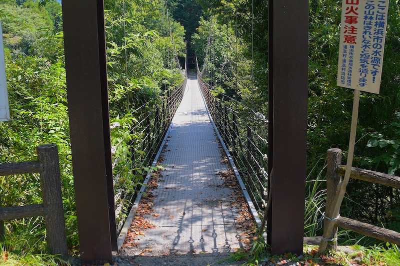 そんな中での立ち寄りお勧めスポットは諏訪神社の大杉と久保の吊り橋です。諏訪神社の大杉は樹高45.5m、樹齢約700年の神奈川県下有数のスギの巨木で国道のすぐそばにあり、そこから走る旧道は風情があって良いです。そして久保の吊り橋は国道のすぐ脇にある全長71mのワイヤー式の吊り橋で、しっかりしていますが結構揺れるのでスリルを味わえます。眼下に道志川を望めてそばには村営の農産物直売所もあります。その他、道沿いにある二里塚と四里塚に駐車場からは紅葉を楽しむことができます。