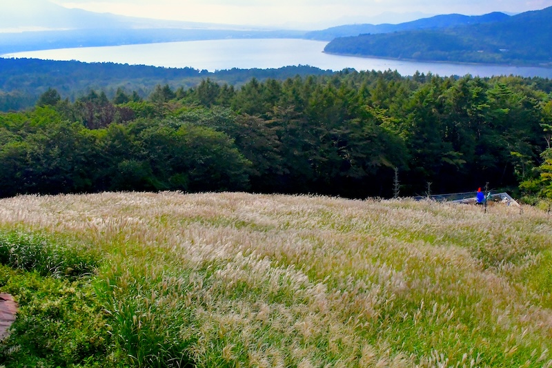 パノラマ台はテラスや駐車場が新設されて綺麗になり、ここからすすき野原越しに山中湖が望めます。そして、三国峠方面に向かうと、一面のすすき野原が迎えてくれます。シーズン時には金色の海に変わるであろうここから見る山中湖も素晴らしいです。