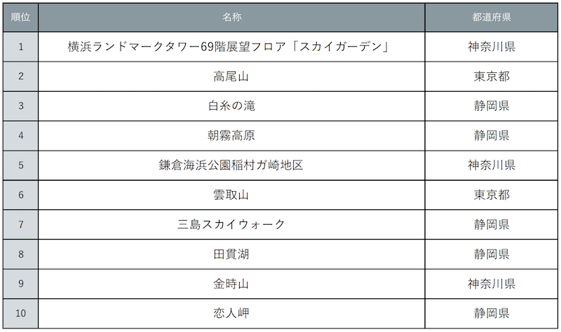 ■富士山と横浜を一望できる絶景展望スポット「横浜ランドマークタワー69階展望フロア『スカイガーデン』」が1位を獲得