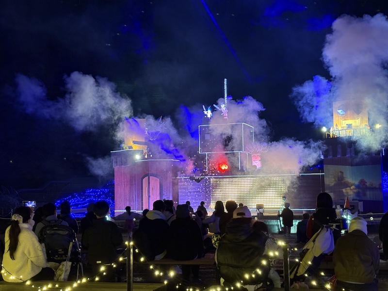 中央口広場噴水内の古城では、森の妖精「モーリー」が主役となって展開されるオリジナルStory「モーリー王子の大冒険 最終章~聖夜~」のショーをご覧いただけます。カラフルなライトアップやスモーク、レーザーやプロジェクションマッピングなどにより進んでいくドキドキの物語は必見です。第1章・第2章を見逃した方も楽しめるよう動画配信しているので、安心して続きをご覧いただけます。また、植物園花壇では光と音の演出による「もみじぃの魔法de SHOW」やカエデ園の光のショーなど、見どころが盛りだくさんです。