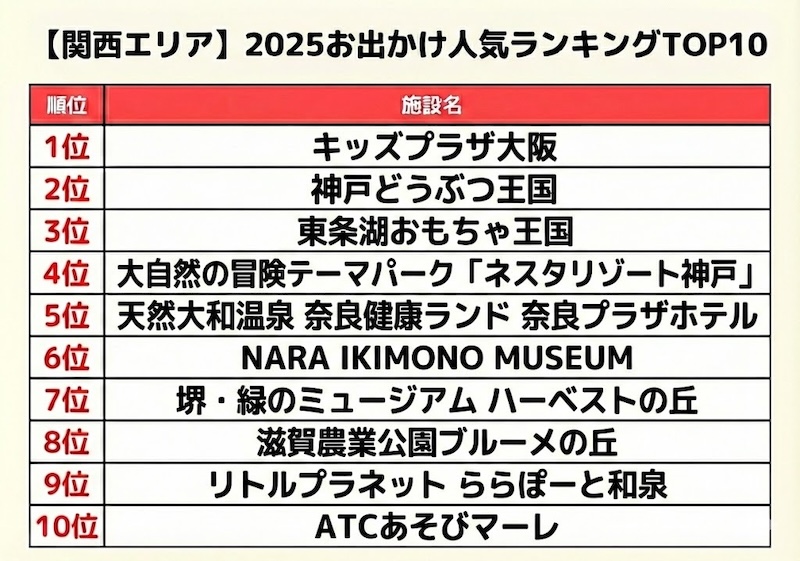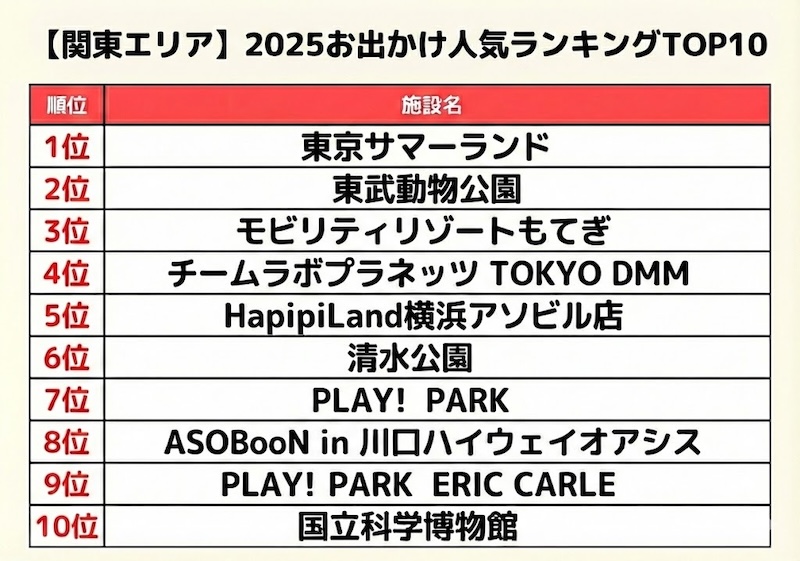 国内最大級の子どもとお出かけ情報サイト「いこーよ」(https://iko-yo.net)を企画・運営するアクトインディ株式会社では、2025年のお出かけ人気スポット年間ランキングを「いこーよ」内で発表いたしました。