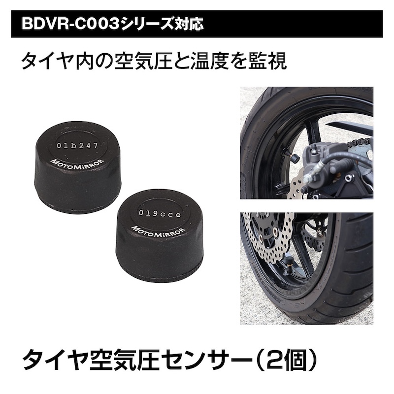 BDVR-C003/BDVR-C003Cと接続することで空気圧やタイヤ温度をモニタリングできます。