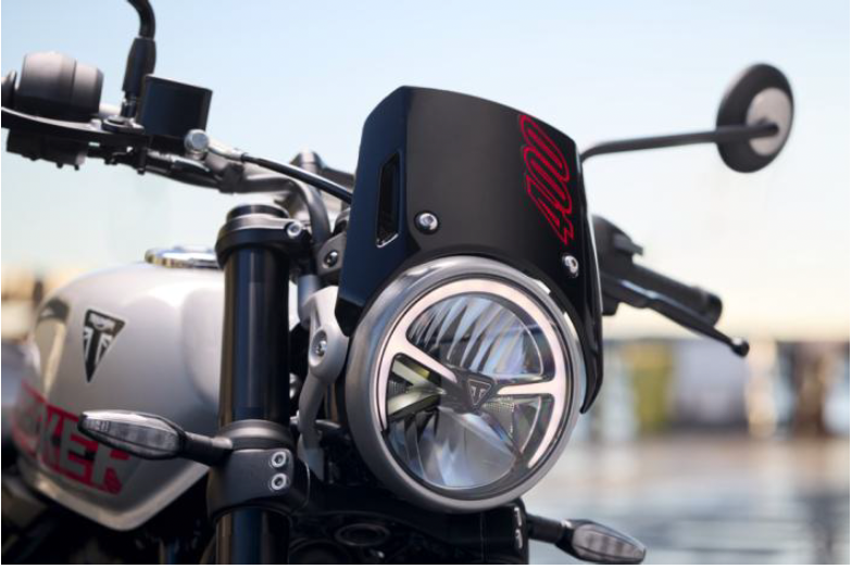 クラシックなトライアンフのエンジンプロファイルに、流麗なラインとシャープな現代的造形を融合させたスカルプトデザインのフューエルタンクを組み合わせ、トライアンフのトライアングルバッジがその存在感を際立たせます。