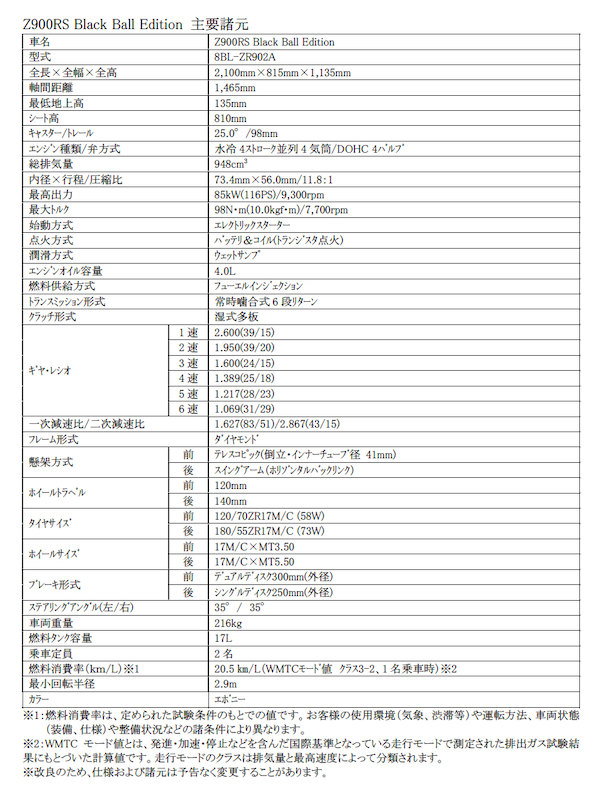 | 車名 | Z900RS Black Ball Edition |