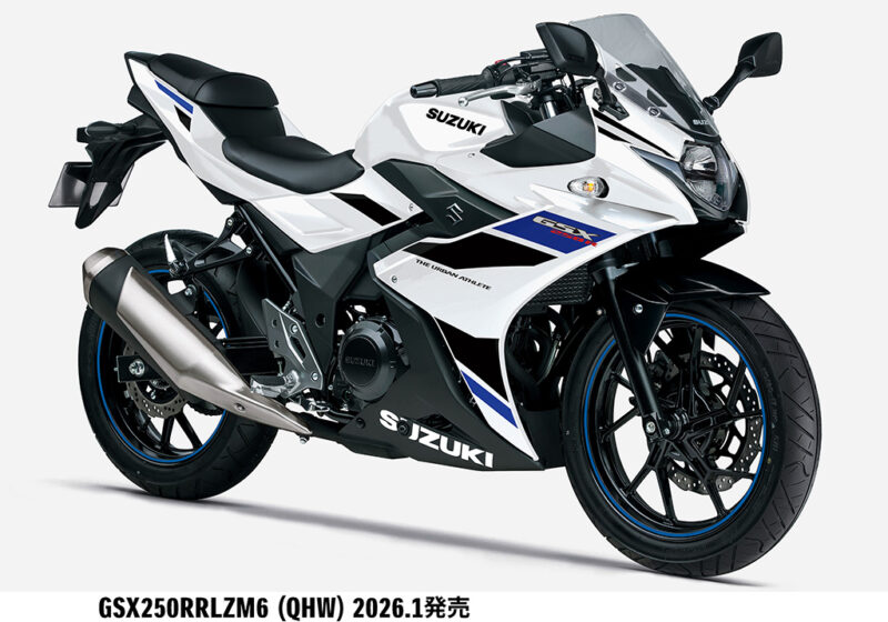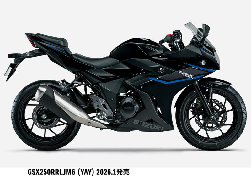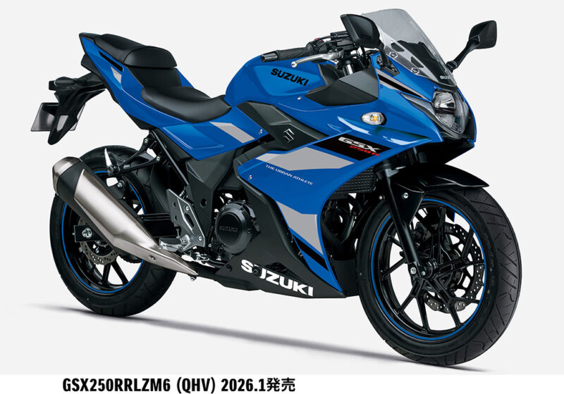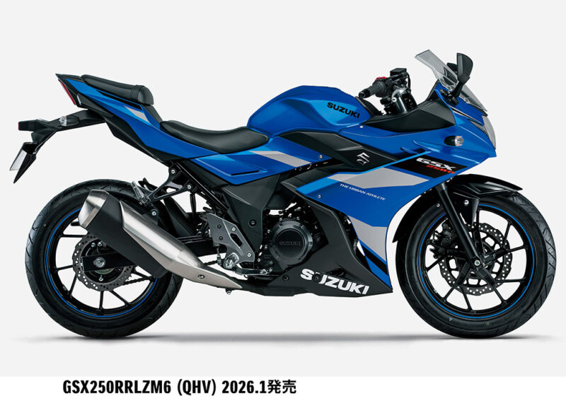 スズキ株式会社は、街乗りにおける日常的な扱いやすさとスポーティーなスタイリングを特長としている250ccロードスポーツバイク「GSX250R」のカラーリングを変更して2026 年1 月9 日より発売します。