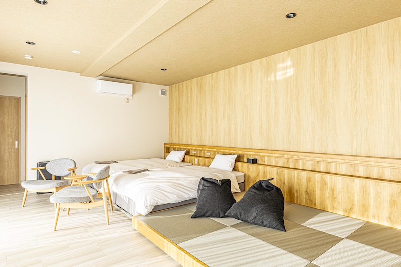 客室タイプはニーズに合わせて選べる4種類。いずれも1棟貸切型のプライベートヴィラのため、周囲を気にせず特別な時間をお過ごしいただけます。全室に専用BBQスペース・個別バスルーム・冷暖房を完備しており、冬でも快適に滞在できます。