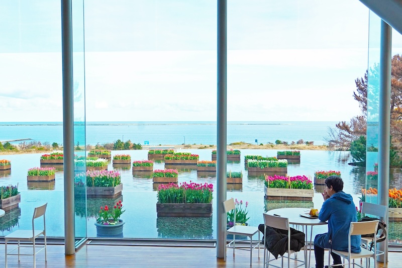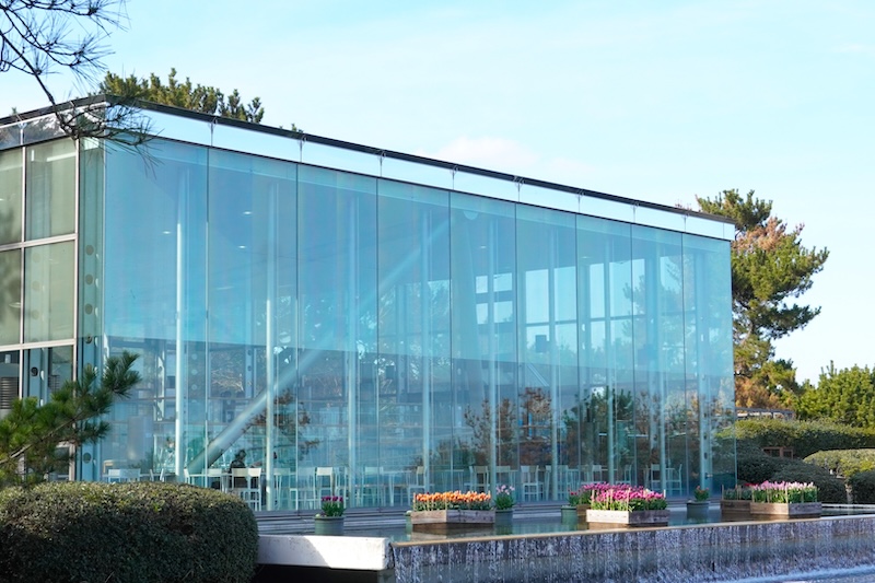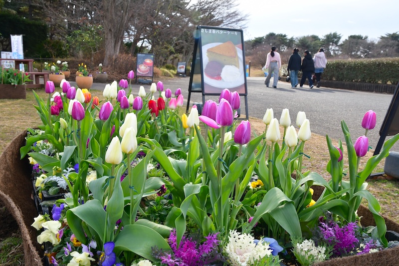 園内のカフェテラスでは、「冬の公園でティータイム」をコンセプトに、アイスチューリップの観賞をおすすめしています。寒い季節でも快適に過ごせる温かい室内で、飲食を楽しみながら、色鮮やかに咲く冬の花風景をご覧いただけます。散策の合間のひと休みや、花を眺めながらのくつろぎの時間に、ゆったりとしたティータイムをお楽しみください。