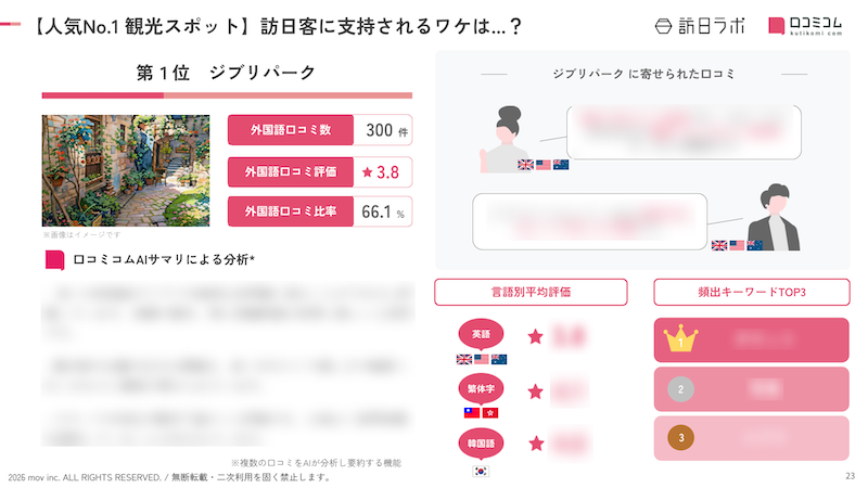 ここからは、独自調査で明らかとなった人気観光スポットの分析結果を一部ご紹介します。
