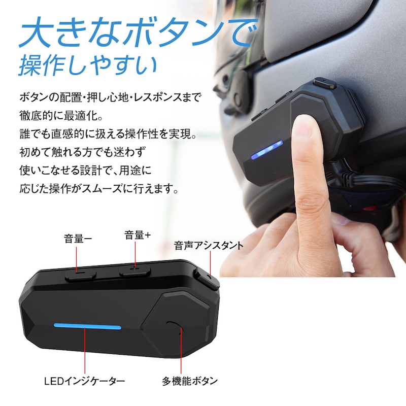 1000mAhの大容量バッテリーが内蔵されており、長時間のツーリングでも心配ありません。