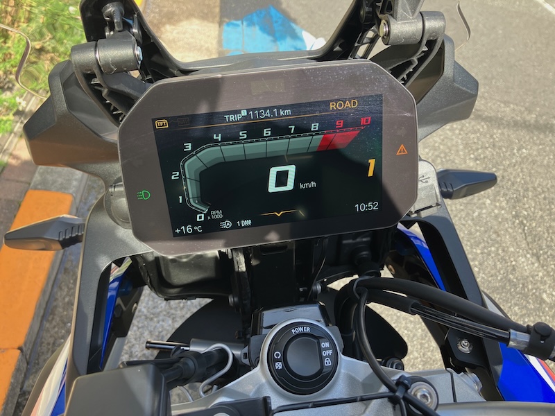 ただ、最大トルクを発生する6,750回転くらいまでトルクフルに回るため結構回して楽しんでしまい(設定で変更出来ますが)がちです。(ツーシング使用で18.7km/L)あと、エンジン音が同じく2気筒894ccのF900rのドドドド…という音に対して、F800GSはトトトト…と若干軽い感じがして、エグゾーストノートを楽しみながら走る…という感じ少し薄かったです。