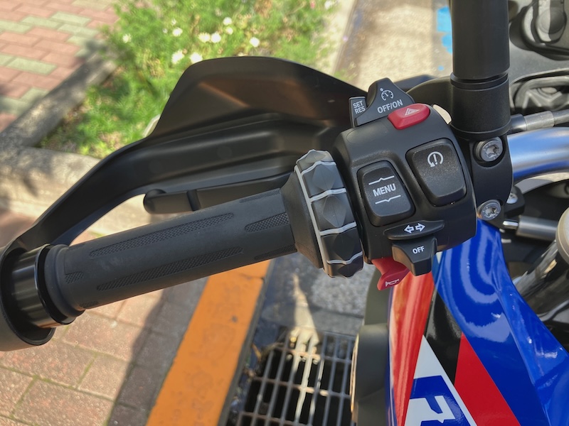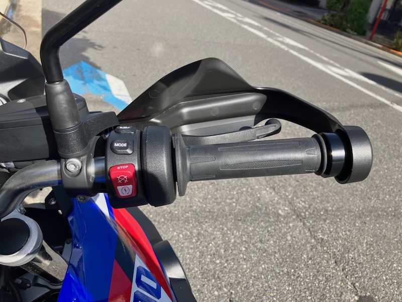 ハンドル周りは左ハンドルにジョグダイヤルがついていてディスプレイ操作がしやすいです。また、ハンドルプロテクターもついていて、走行風から手をガードしてくれます。