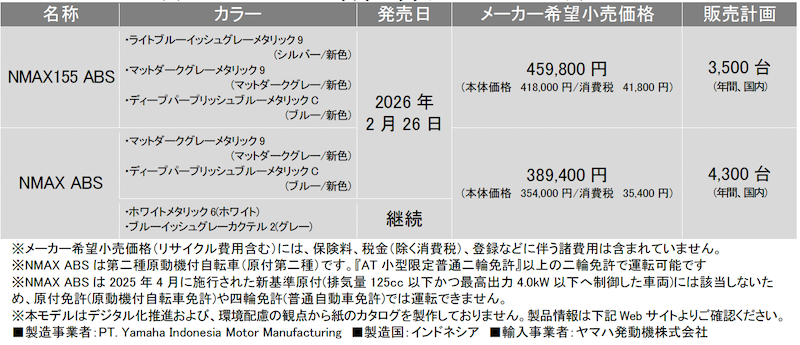 【ヤマハ】「NMAX155」「NMAX」新色発売
