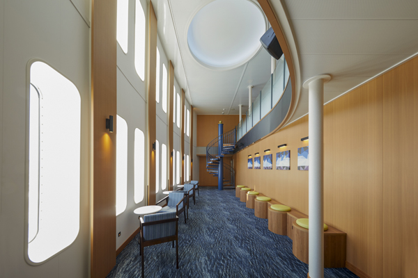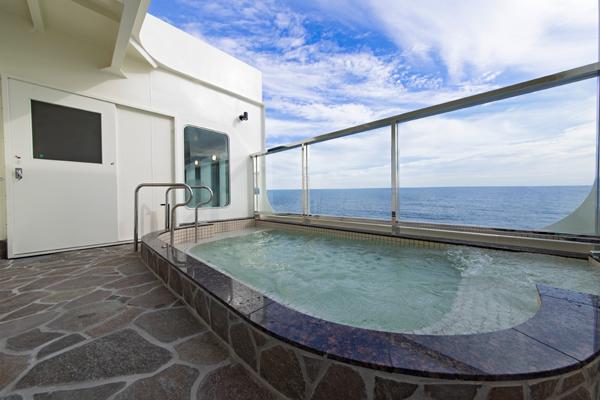日常の喧騒から少し離れ、爽快な青空のもと、どこまでも続く水平線に想いをはせるひとときも、船旅ならではの楽しみです。