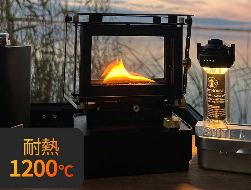 内側のガラスは耐熱1200℃!耐熱石英ガラスを採用し割れにくく安心して火を楽しむことができます。