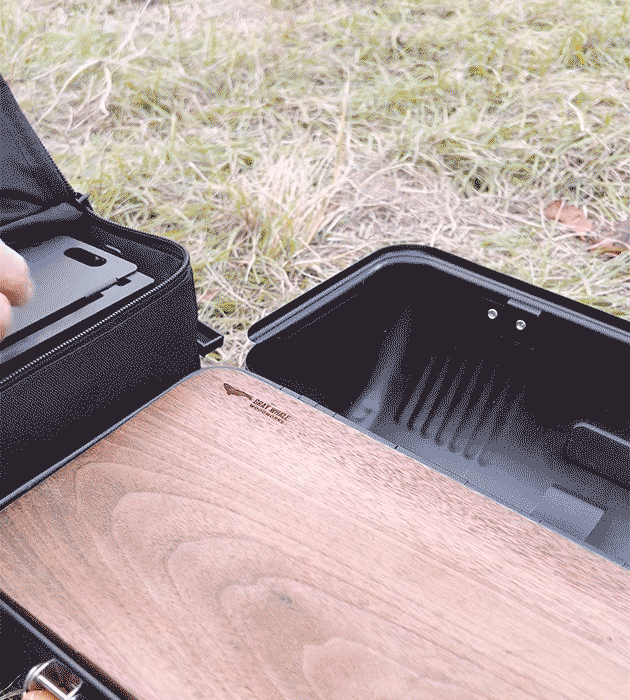 アウトドア用のバスケットやコンテナ、トランクカーゴなどにすっぽり収まるコンパクトさ。