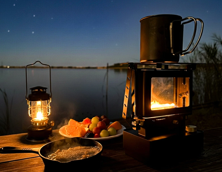 お湯を沸かしてコーヒをの飲んだり、メスティンで調理したりできます。
