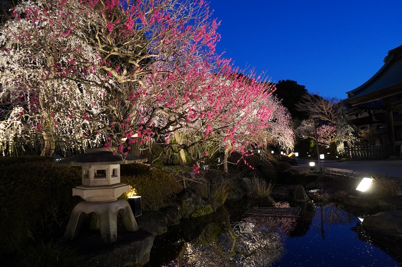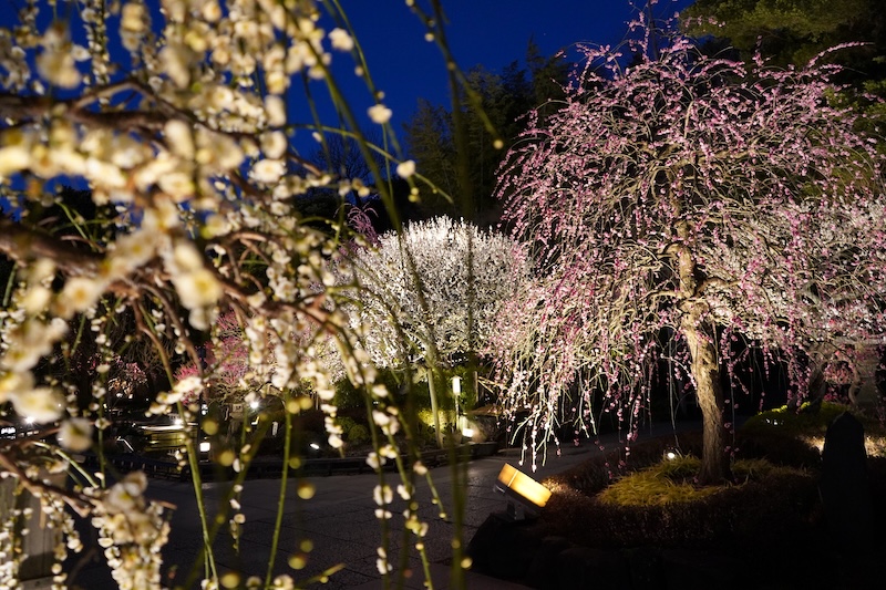 青空に映える梅の花も大変美しいですが、2023年より実施している【梅のライトアップ】を今年も期間限定で実施いたします。