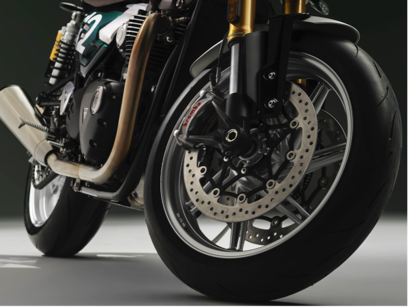 制動力は、320mmディスクに組み合わされたブレンボ製Stylemaツインキャリパーによって発揮されます。さらに、高性能なメッツラー Racetec RR K3タイヤを標準装備し、レバー操作に対してダイレクトで一貫したタッチを備えた、安心感の高いブレーキング性能を実現しています。