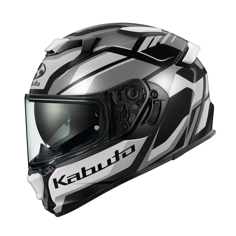 従来の紫外線カットに加え、ヘルメット内部への熱伝導を低減する赤外線カット素材を使用したシールドと大型インナーサンシェードを装備した、フルフェイスヘルメット「KAMUI-5(カムイ・5)」に新たなグラフィックモデル「KAMUI-5 GRAVIX(カムイ・5 グラヴィクス)」を追加します。