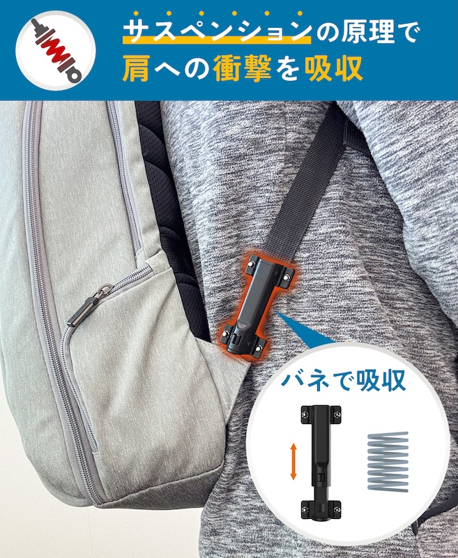 この過度な荷重をバネの弾性を利用することで方への負担を減らします。