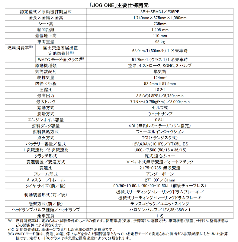 JOG ONE製品サイト: https://www.yamaha-motor.co.jp/mc/lineup/jogone/