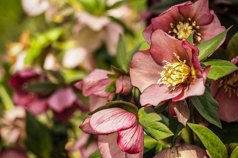1つとして同じものはないと言われるほど花色や姿のバリエーションが豊富な植物です。白や紫などの大株のクリスマスローズが斜面一面に広がる様子をご覧ください。