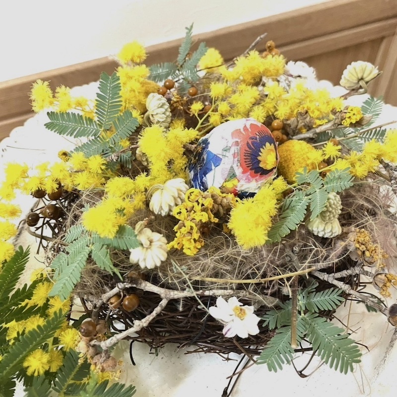 スモークツリーやミモザなど、公園の草木を使ったアレンジメントで春を飾ります!