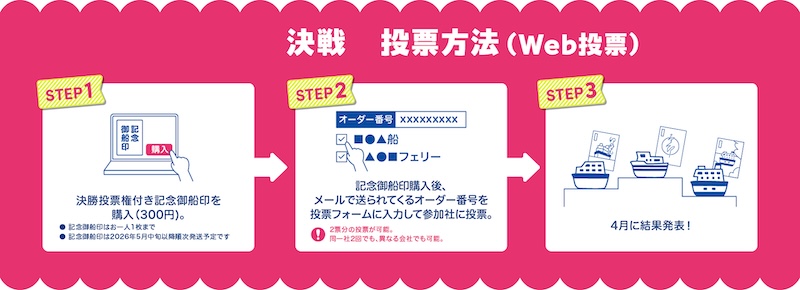 オンラインショップで特別な御船印をご購入いただき、投票フォームより応募
