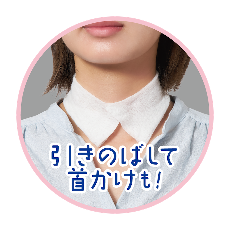 首元や肌をひと拭きすると、約30秒でひんやり感(※1)をまとった“氷肌武装”が完成するため、外出前のわずかな時間でサッと仕込むのがおすすめ。もちろん、移動中や汗をかいたあとにも使用でき、汗や皮脂のベタつきをスズシートが絡め取って、ひんやり感(※1)でスーッとリフレッシュ。引っ張ると伸びるワイドシートは首元にもかけられ、効率よくクールダウンできます。