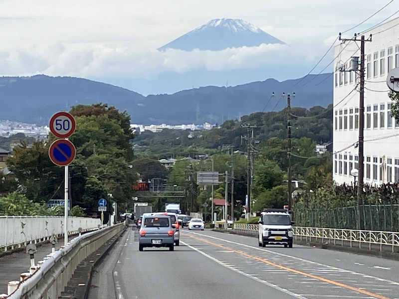なお、そのまま弘法山公園沿いの道を走りチルノ博物館方面から下りると住宅街越からも富士山を望むことができます。