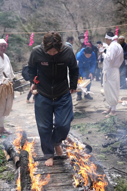 護摩を焚いた後の炭火の上を、裸足で歩き抜けます。