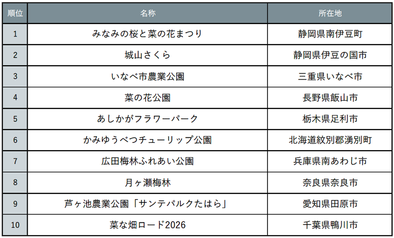「じゃらん 春らしさを感じる花絶景ランキング」