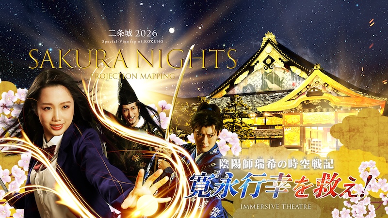 世界遺産・元離宮二条城(京都市中京区)を舞台に、日本アカデミー賞受賞の安田淳一監督によるイマーシブシアター、国宝・二の丸御殿の夜間特別観覧、プロジェクションマッピングという三つの没入体験を展開する夜間イベント「二条城 2026 SAKURA NIGHTS Immersive Theatre & Projection Mapping」のチケット販売を2月13日から開始いたしました。