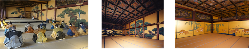 寛永3年(1626年)、大御所 徳川秀忠と三代将軍・徳川家光が後水尾天皇を二条城に迎え、もてなした出来事。5日間に渡る行幸では、贅沢な料理、舞楽、能楽、和歌や管弦遊びなど、最上級のもてなしが繰り広げられた。この「寛永行幸」は、江戸時代を通じて最大級のイベントであり、平和の世の到来を告げ、この行幸をきっかけに、のちの日本文化に多大な影響をもたらす「寛永文化」が花開いた。