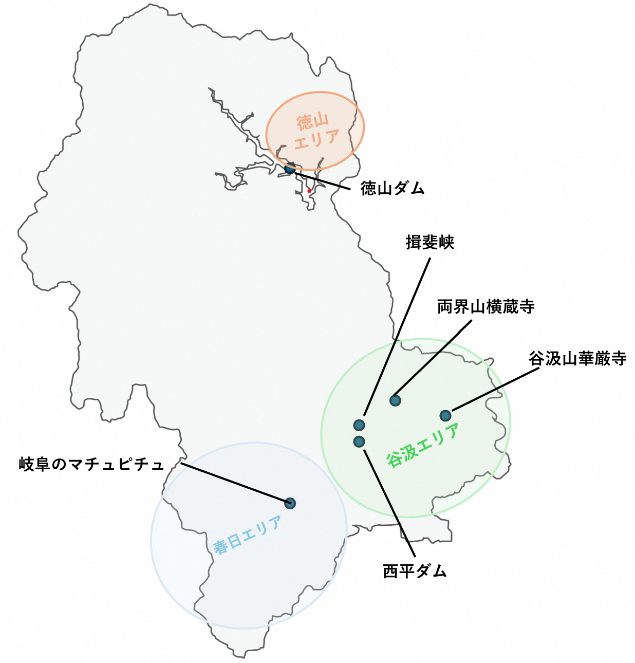 華厳寺がある揖斐エリアは、揖斐川の清流に沿って広がる、豊かな自然に根付いた里山の暮らしが息づく地域です。近年は“岐阜のマチュピチュ”や「薬草の里」としての滞在体験など、地域ならではの魅力が注目されています。
