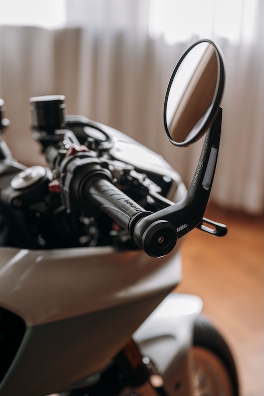 ブレーキ、クラッチレバー(リザーバー一体型)、フットペグ、そして標準装備のリゾマ製フューエルキャップなど、数多くのビレットアルミニウム製コンポーネントが視線を惹きつけます。これらのディテールは、静止している瞬間も、走り出した瞬間も、その存在感を放つよう設計されたこのモーターサイクルの完成度をさらに高めています。