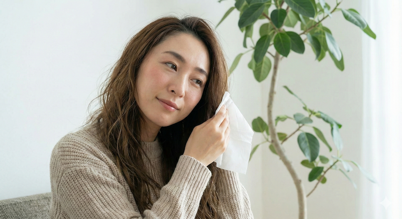 シートの素材にもこだわり、コットンレーヨン製の不織布を使用しています。コットンのやさしい肌触りと、レーヨンの高い吸水性を組み合わせることで、摩擦を抑えたなめらかな拭き心地を実現しました。