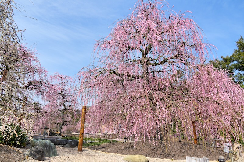 例年、見頃を迎えてから1週間~10日ほどで散り始め、その後さらに1週間~10日ほどで見頃を終え(天候により前後します)、本年の公開を終了します。散り始め以降も、花びらが静かにこぼれる様子や梅吹雪、花びらの絨毯など、終盤ならではの風景をお楽しみいただけます。見頃終盤には職人による剪定の実演も予定しています。
