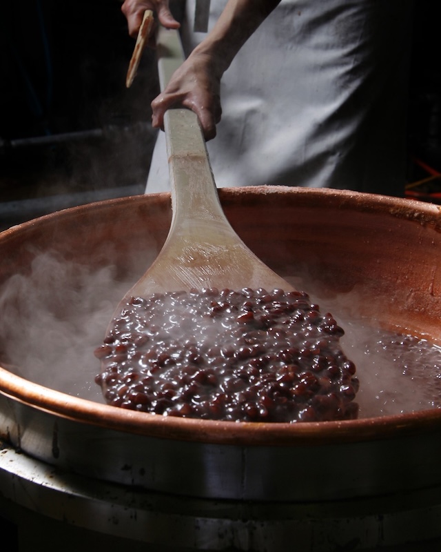 六升釜を使い炊いた「あも」の餡にお餅を添えて。