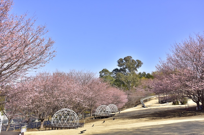 伊豆ぐらんぱる公園では、2004年に植栽した早咲きのご当地桜「城ケ崎桜」が見頃を迎え、現在5分~7分咲きとなっております。