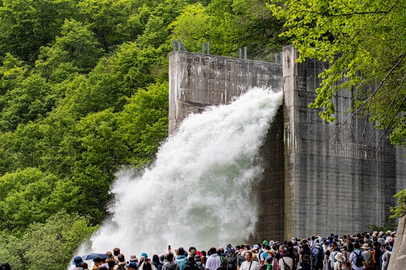 矢木沢ダムの大迫力の放流は午前・午後の2回を予定しており、各回約10分間のハイライトでは毎秒30トンの放流を実施予定です。