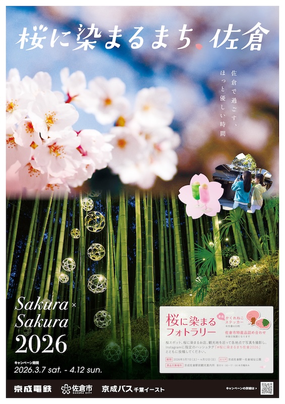 本キャンペーンは、千葉県佐倉市と京成電鉄株式会社、京成バス千葉イースト株式会社が連携し、桜の名所として人気のある佐倉城址公園を中心に、城下町・佐倉を「桜」色に染めるキャンペーンです。