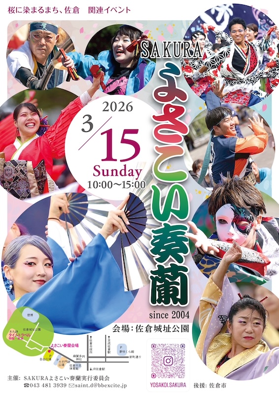 佐倉市内外のよさこいソーランチームが一堂に会し、個性豊かな衣装を身に着けて、パフォーマンスを披露します。また、「sakura タイムトラベル2026」も実施します。