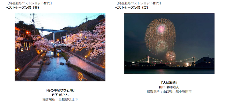 高速道路ベストショット部門、および西日本ベストスポット部門にご応募いただいた639作品から、厳正なる審査を経て、以下のとおり入賞作品が決定しました。入賞者のみなさま、おめでとうございます。
